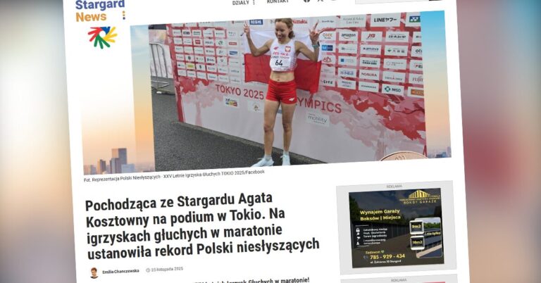 Agata Kosztowny brązową medalistką XXV Letnich Igrzysk Głuchych w maratonie! Nowy Rekord Polski Niesłyszących: 3:00:31! – poinformowała dziś rano (25.11.2025 r.) Reprezentacja Polski Niesłyszących – XXV Letnie Igrzyska Głuchych TOKIO 2025.
